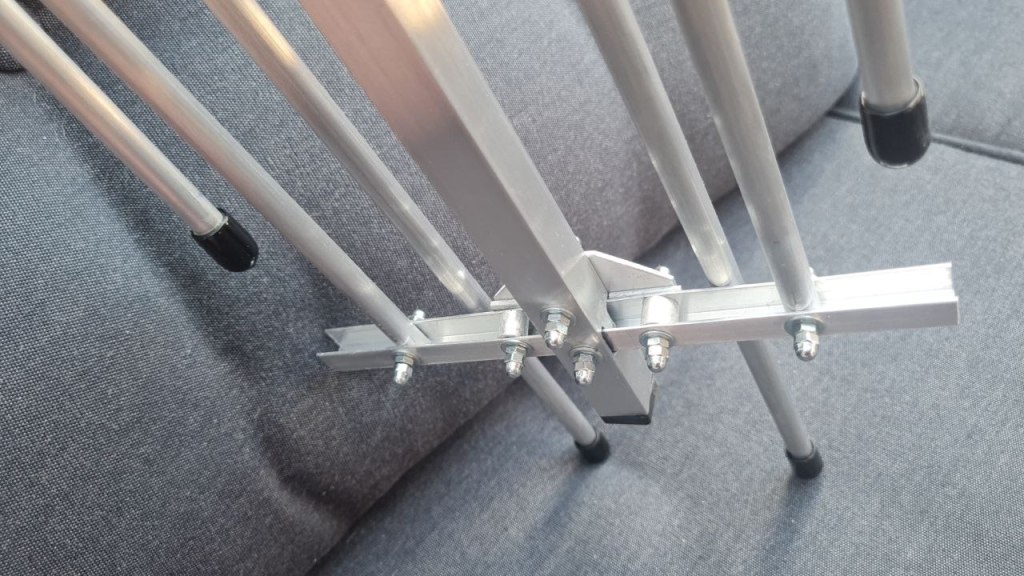 Paar stukjes aluminium plaat om de U-profielen aan de boom vast te maken.