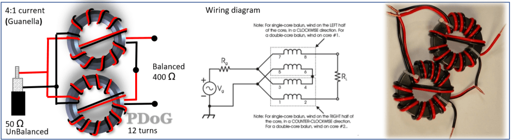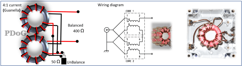 De Guanella stroombalun is een breedbandbalun met laag verlies die idealiter common-mode-stromen die de radiokamer binnenkomen, zal verstikken en, belangrijker nog, een overgang biedt van de ongebalanceerde uitvoer van de T-Match-tuner naar de gebalanceerde voedingslijn van het antennesysteem.