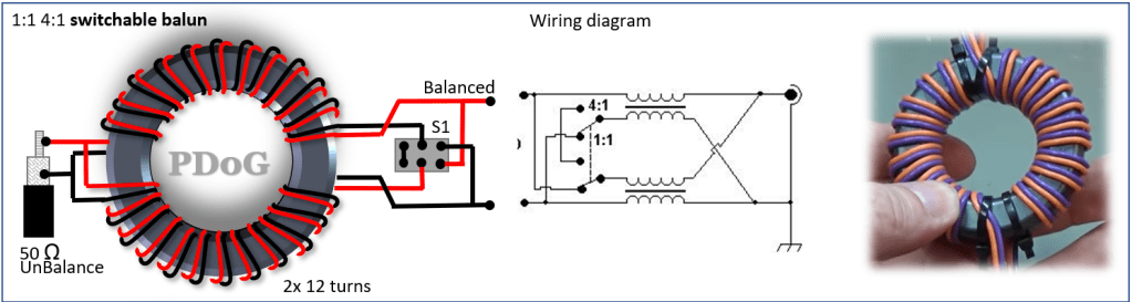 Switchable balun 1:1 – 4:1 – 9:1 – 16:1