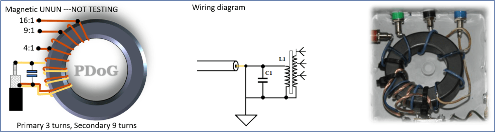 Een stroombalun kan voor de meeste situaties de meest geschikte balun zijn, maar vanwege de extreem lage en hoge impedanties die vaak voorkomen bij multi-band gebalanceerde antennesystemen kan een balun nodig zijn om de voedingsimpedantie die wordt gepresenteerd op de T-Match-tuner te verhogen of te verlagen. Het is om deze reden dat ik ervoor heb gekozen om de balun niet op te nemen als een integraal kenmerk van de T-Match-tuner, maar te kiezen voor de flexibiliteit van een buitenboordbalun en de mogelijkheid om verschillende baluns te testen, afhankelijk van het gepresenteerde antennesysteem en de gepresenteerde impedanties.