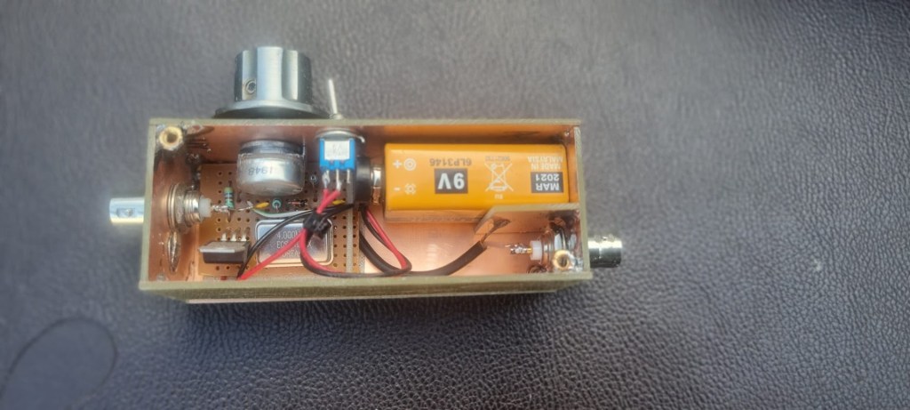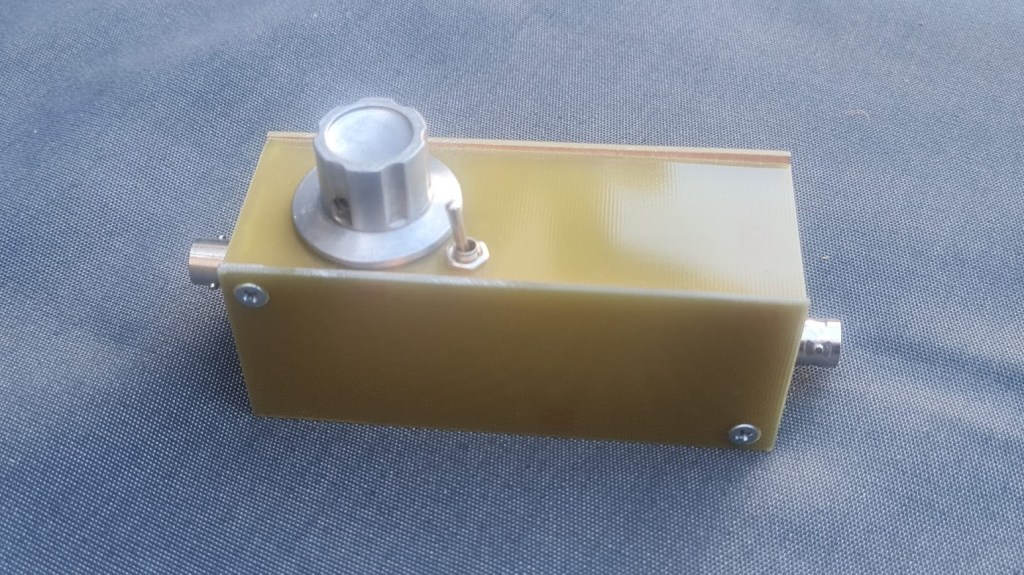 - Het buigen van de coax van verzwakker naar ontvanger had de neiging de verbindingen in de verzwakkerkast te verbreken, dus heb ik een BNC-connector op de uitgang van het apparaat geplaatst. Een korte BNC-startkabel gaat van verzwakker naar ontvanger.