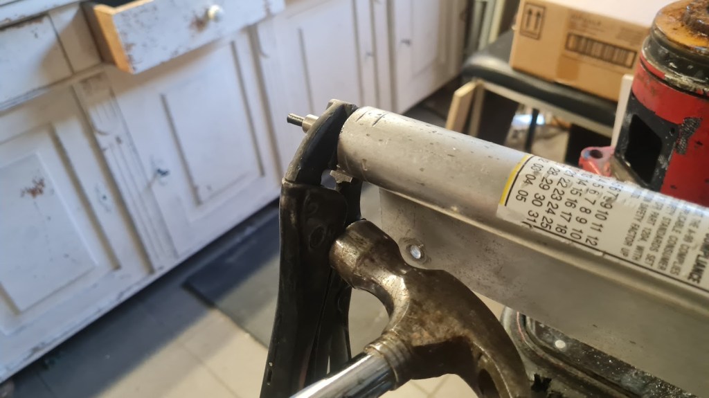 De huls die over de glasfiber zit had ik eerst verwarmd, om de lijm te laten smelten. Daarna een bako op de rand geplaats en met een hamer aan het rammen geweest. ongelooflijk hoe vast dat nog zat.