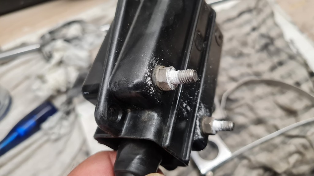 Alle verbindingen eerst in de WD40 en daarna schoon gemaakt van corrosie en ingevet met Belleville-aluminiumvet, en de moeren vervangen die aangetast waren.