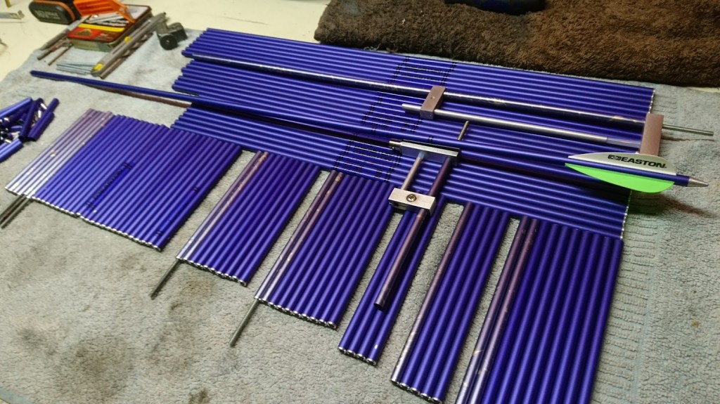 Was even een uitzoekwerk welke pijlschachten ik moest hebben. na wat zoekwerk was ik bij een bedrijf in Wageningen gekomen, die pijlen verkochten . Na een gesprek over de pijlen en de onderdelen die ik nodig had, vertelden ik dat ik antennes er van ging maken. verbaasd keek hij me aan. Had er aardig wat nodig. Dus Pijlen mee genomen en inserts, inserts is een alu busje die je in de pijlschacht moet persen waar de diversen pijl punten er opgedaaid kunnen worden.