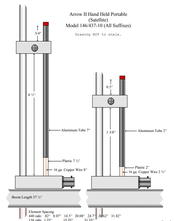 - Een Arrow-antenne heeft twee afzonderlijke Yagi-secties: één voor de 2-meterband (VHF) en één voor de 70-centimeterband (UHF).