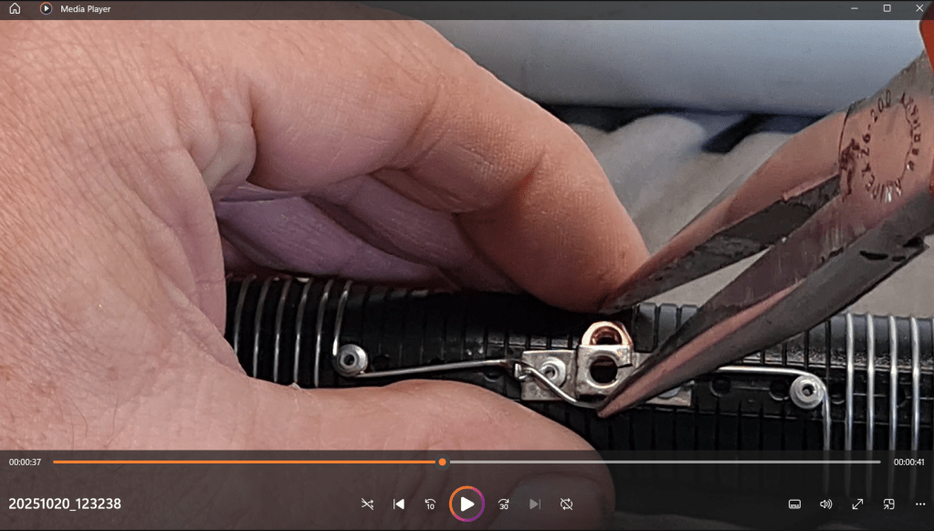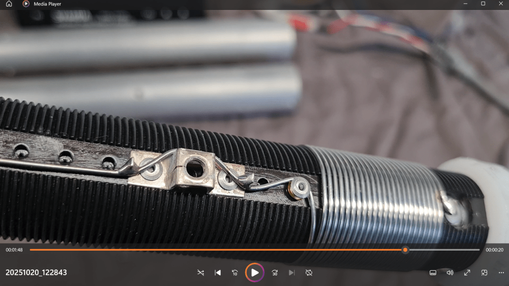 Na grondig speurwerk kwam het probleem aan het licht. Op het spoelhuis zit een clip/beugel met schroefverbinding, geplaatst tussen de spoelen voor 10 en 15 meter. Deze beugel moet elektrisch contact maken met de huls van de spoel. Bij inspectie bleek dat deze ingescheurd was. Door beweging van de antenne werd het contact steeds wel en dan weer niet gemaakt.