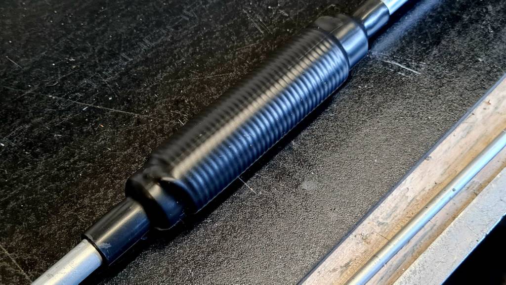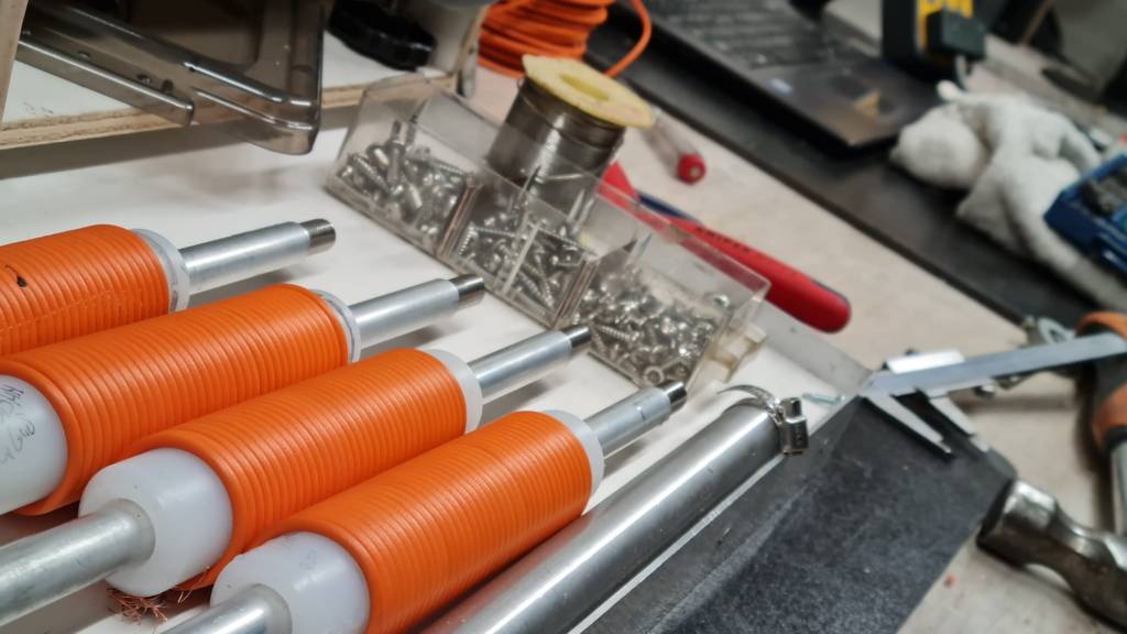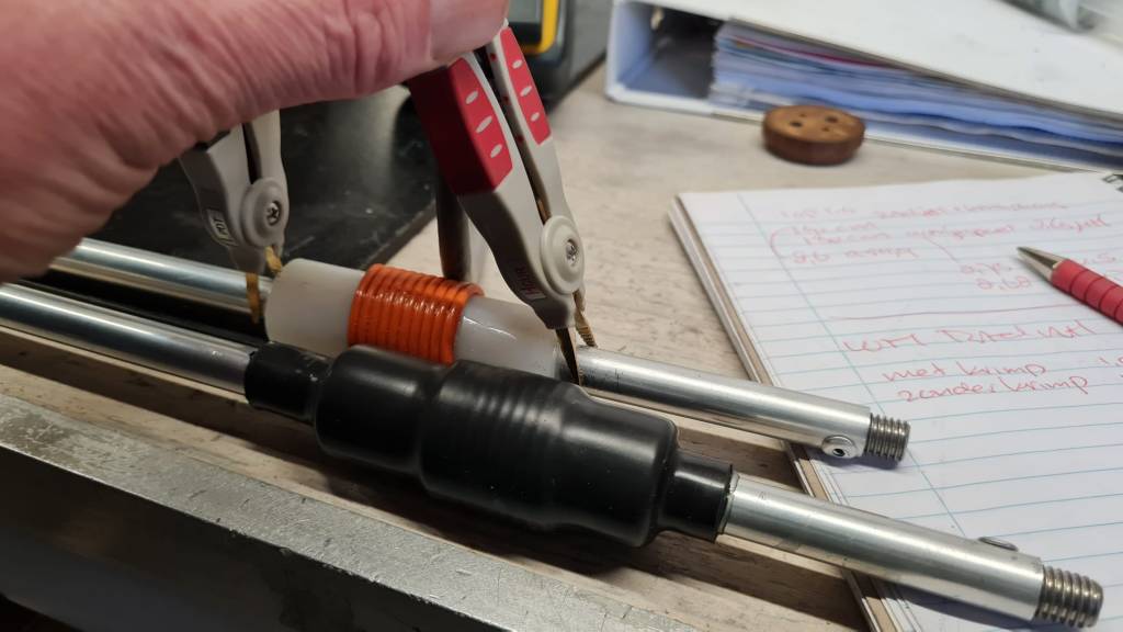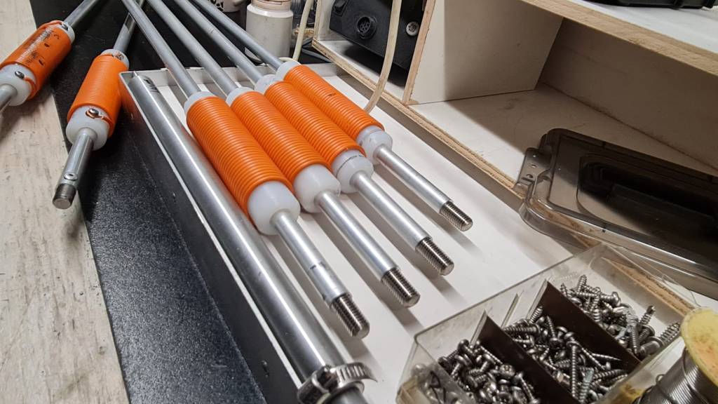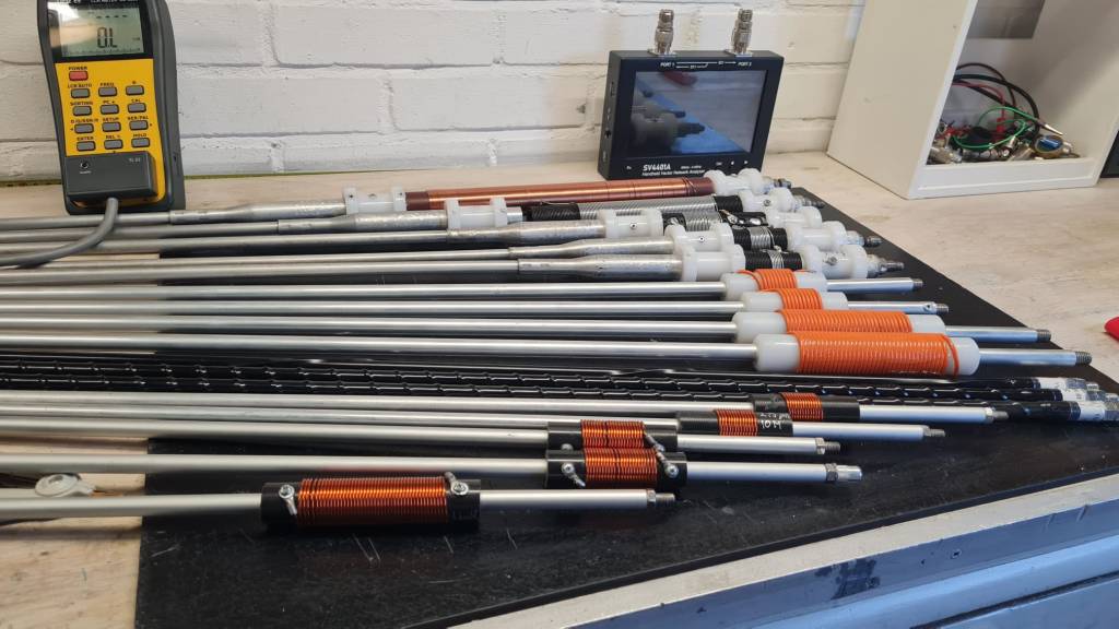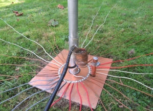 Voor compacte en praktische opstellingen zijn verkorte radialen toegepast met behulp van spoelen. De radialen bestaan uit aluminium buis, voorzien van een spoel (oranje) om de elektrische lengte exact op ¼-golf te brengen. Na afstemming wordt de spoel mechanisch beschermd met krimpkous.