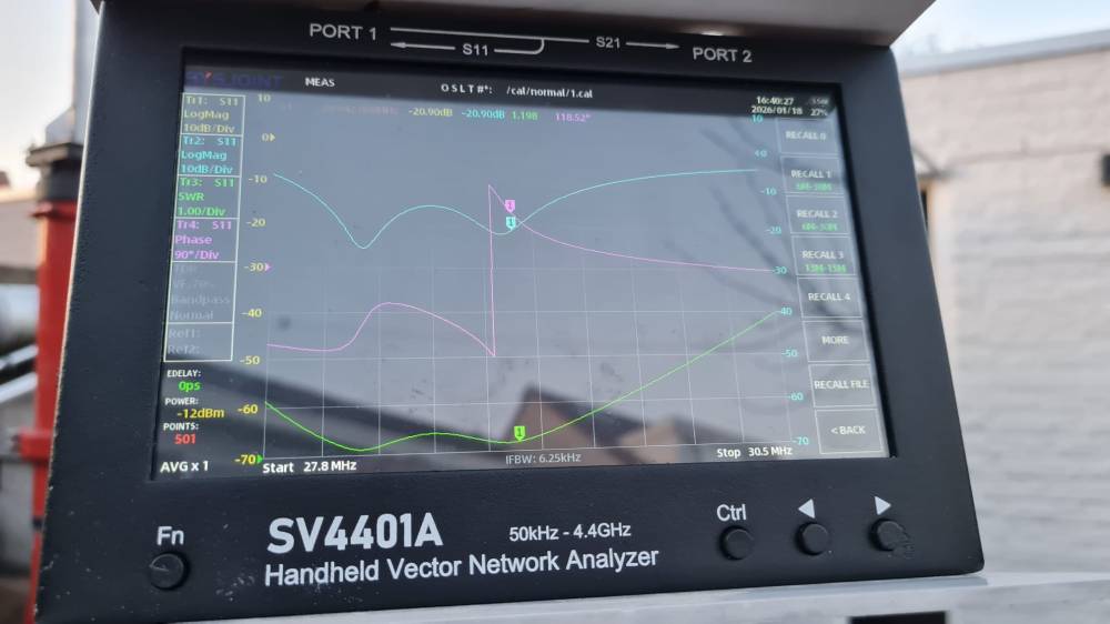 - Op de VNA waren twee duidelijke SWR‑dips zichtbaar.