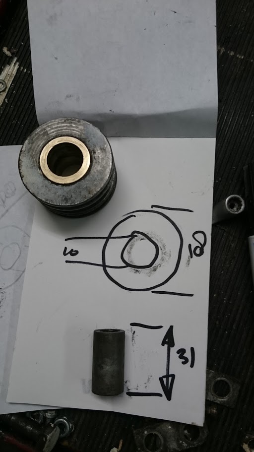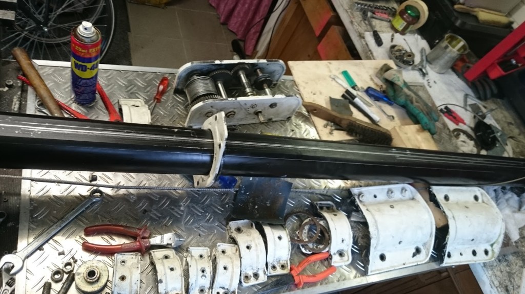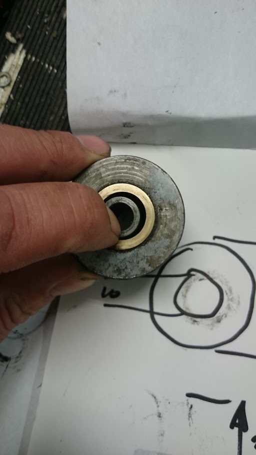 Toen ik eenmaal begon met demonteren, werd de omvang van het probleem pas echt duidelijk. Een van de kabels was volledig getwist en in elkaar gedraaid; deze moest sowieso vervangen worden. Daarnaast ontdekte ik dat een vorige eigenaar had zitten ‘prutsen’ met een geleidewiel dat veel te klein was. Gelukkig heb ik een handige zwager met een draaibank! Na een appje met de juiste maten heeft hij een gloednieuwe bus voor me gedraaid.