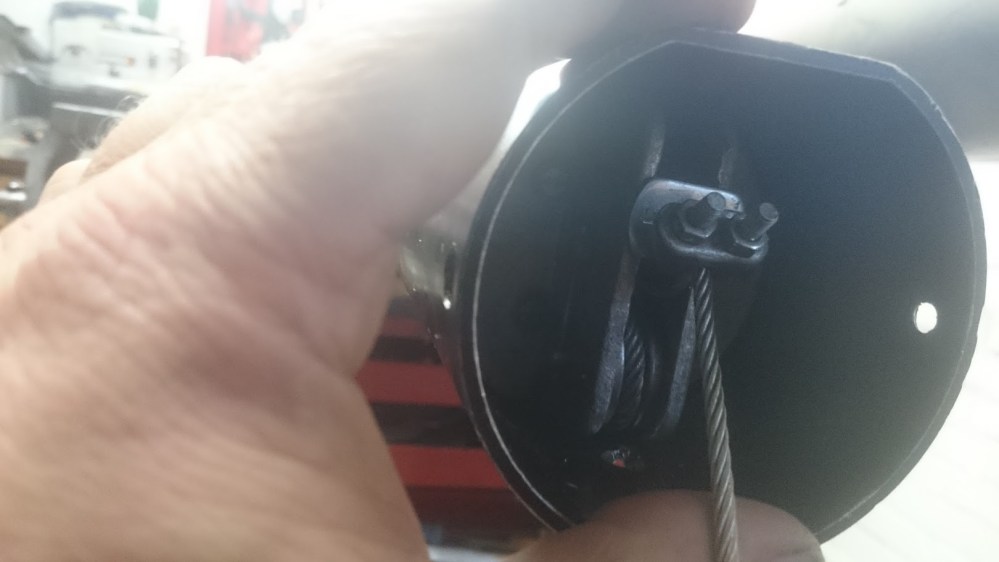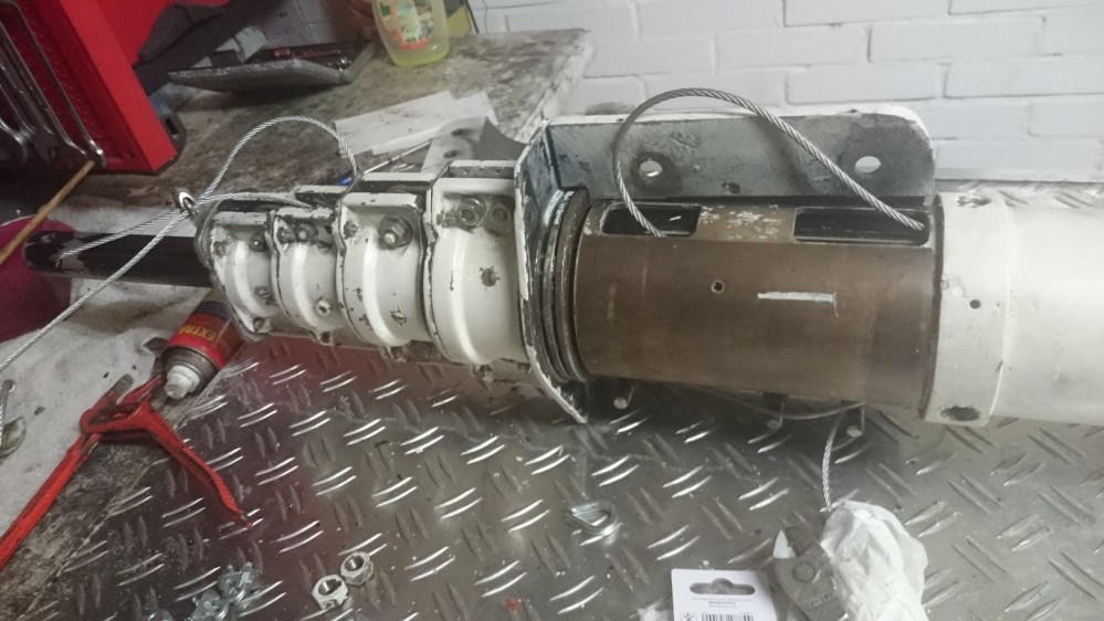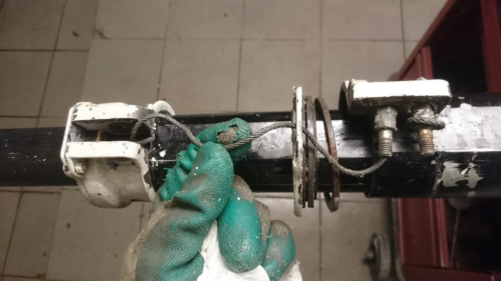 De boosdoener: Ik had bij het eerste uitschuifbaar deel van onderen een kabel op het vaste punt vastgemaakt en door een moer gehaald. Ik dacht dat dit wel zou blijven zitten, maar de kabel was dwars door de moer heen getrokken en volledig beschadigd (gekruld). Een dure maar leerzame les; die kabel kon direct de prullenbak in.
